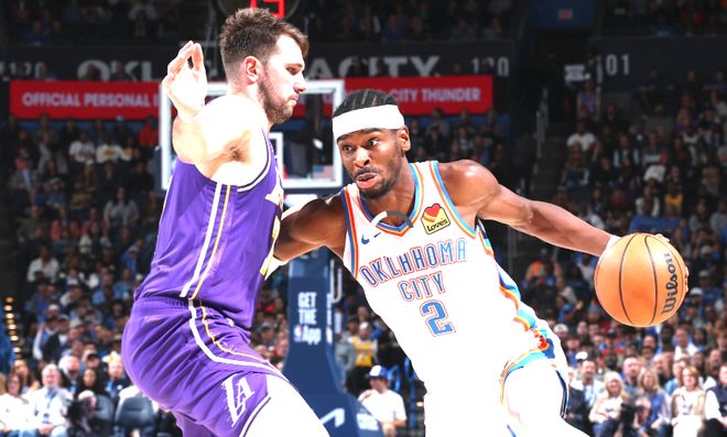卢卡面对切特射中了换防三分,但雷霆依然锲而不舍,用切特的换防对付卢卡,切割湖人的出球。